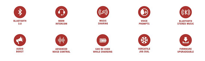 Technologia Bluetooth 3.0 zapewnia możliwość słuchania i udostępniania muzyki, wykonywanie połączeń telefonicznych z funkcji szybkiego wybierania, a także uczestniczyć w rozmowie z kumplami do 700 metrów od siebie, przy jednoczesnym słuchaniu wskazówek GPS oraz możliwością słuchania muzyki.
